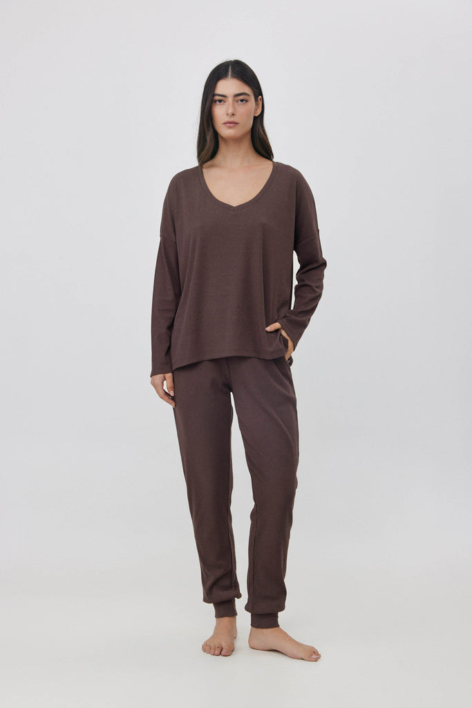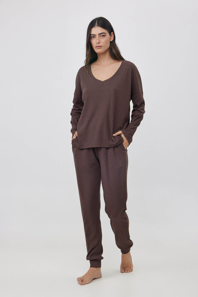 מכנסיים ארוכים בסיומת מנג'ט מבד ריב