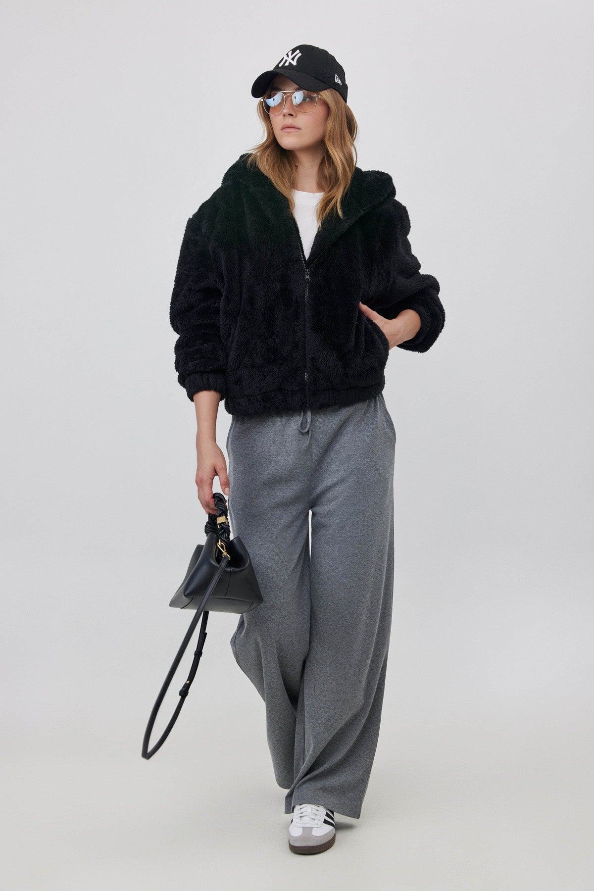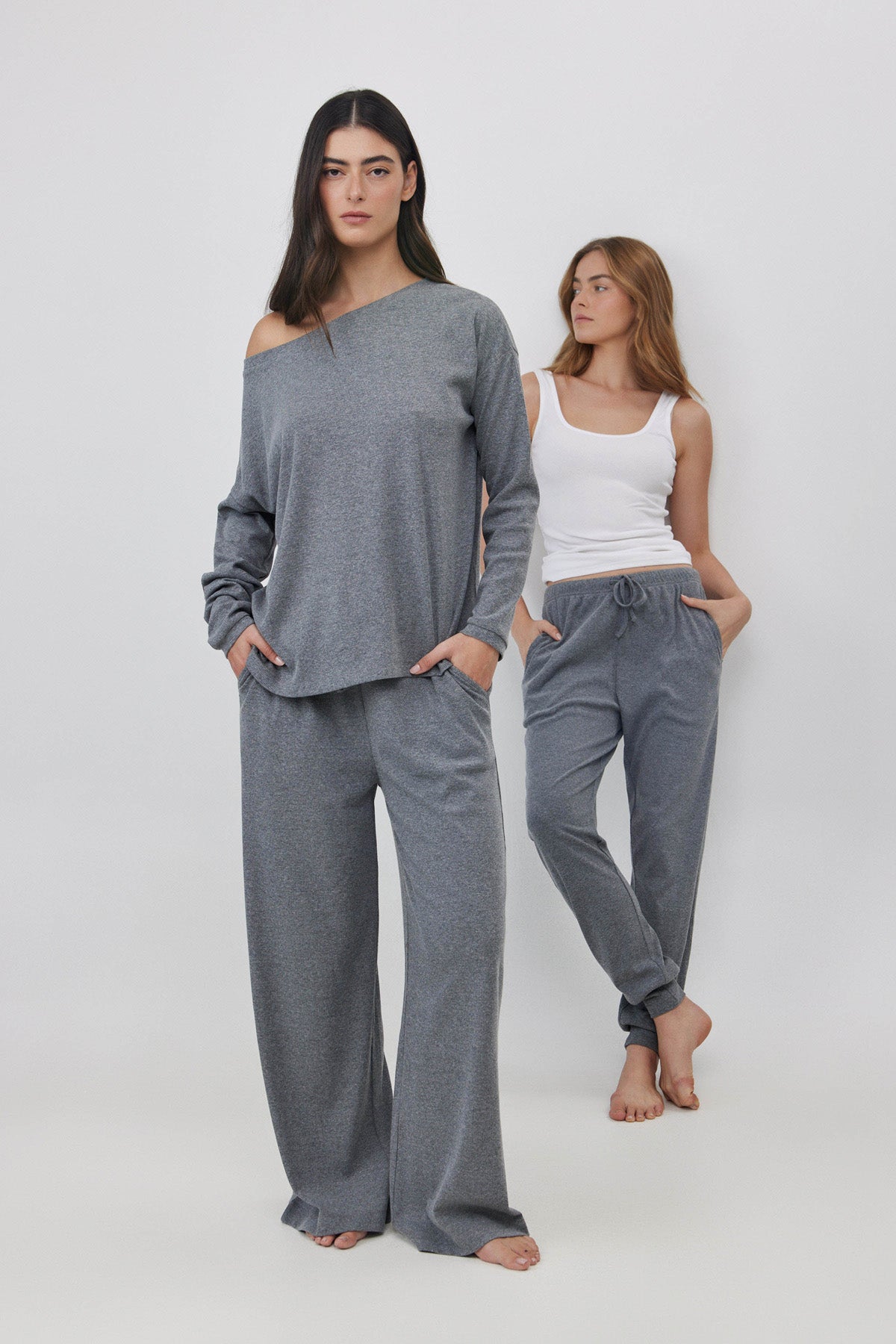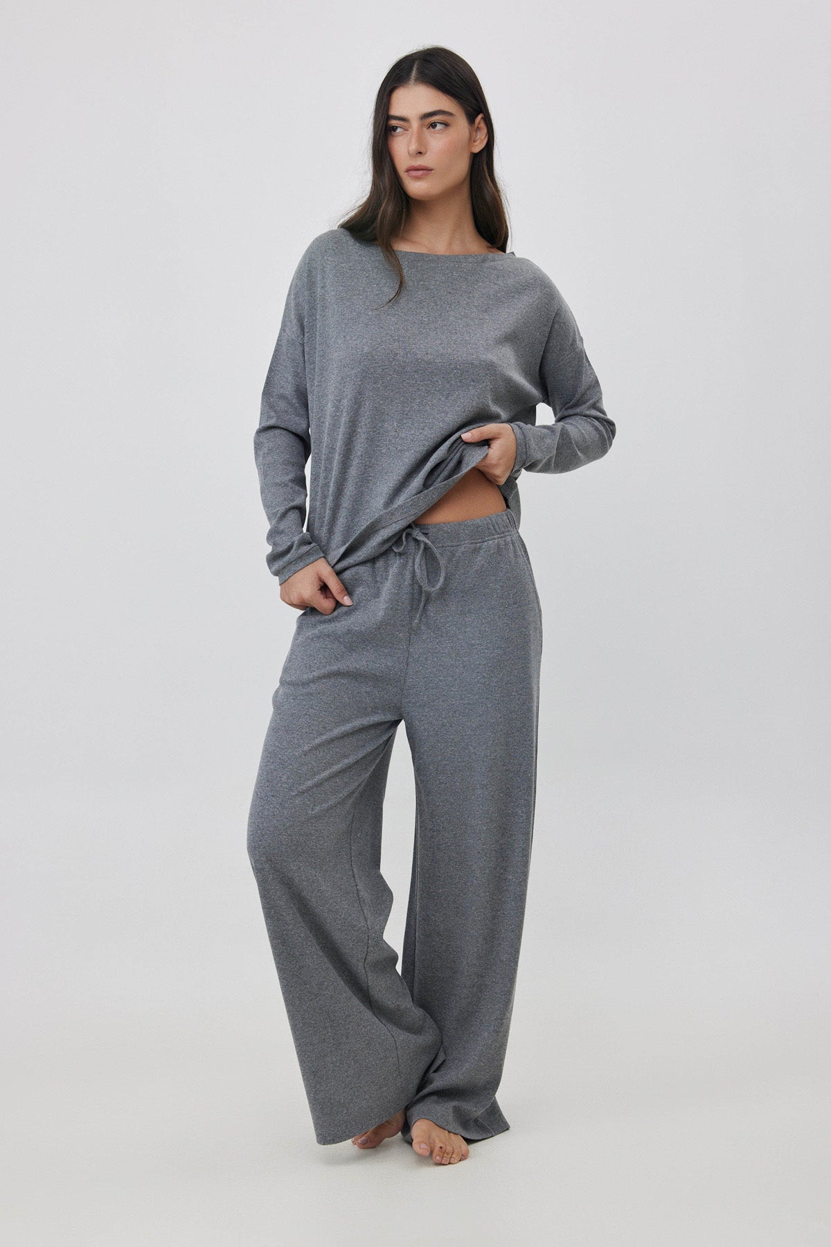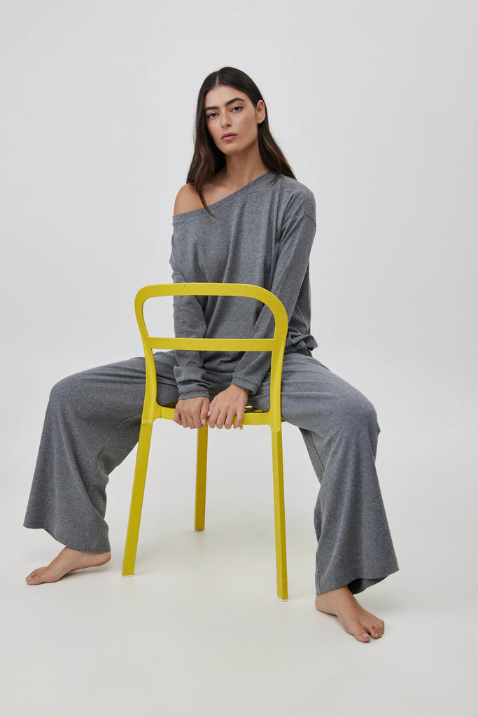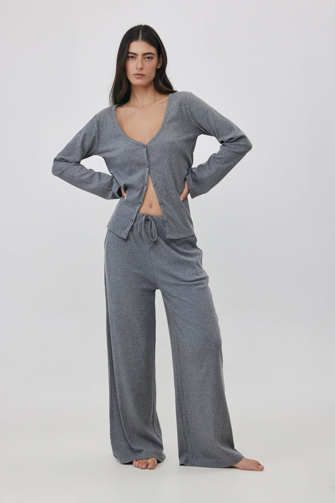 מכנסיים רחבים ריב אפור מלאנג'