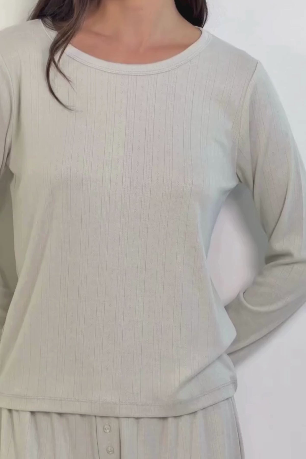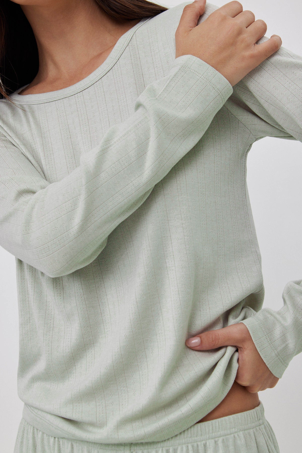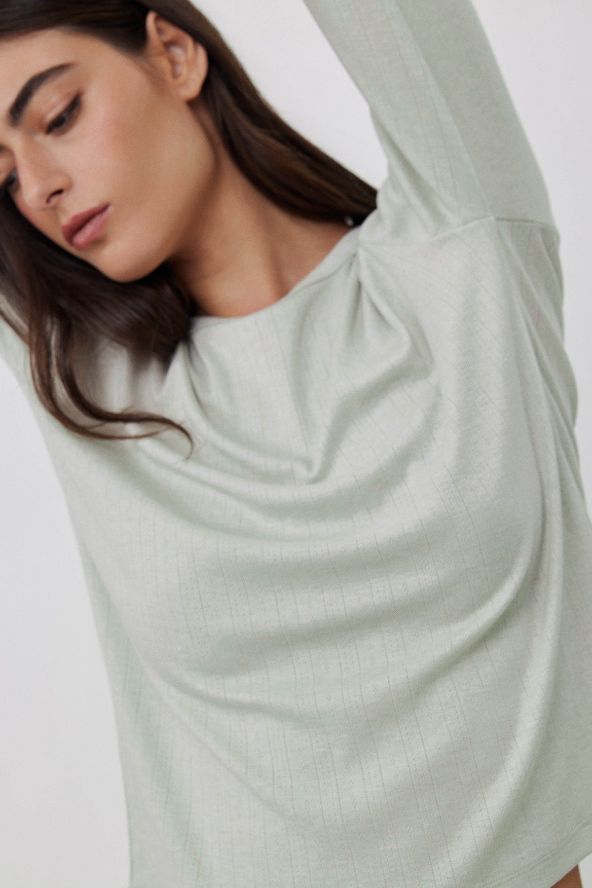 חולצת בייסיק עם שרוולים ארוכים מבד רך בסריגת פויינטל