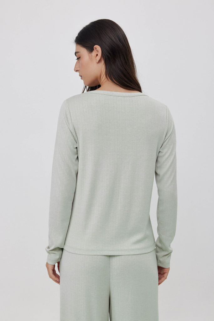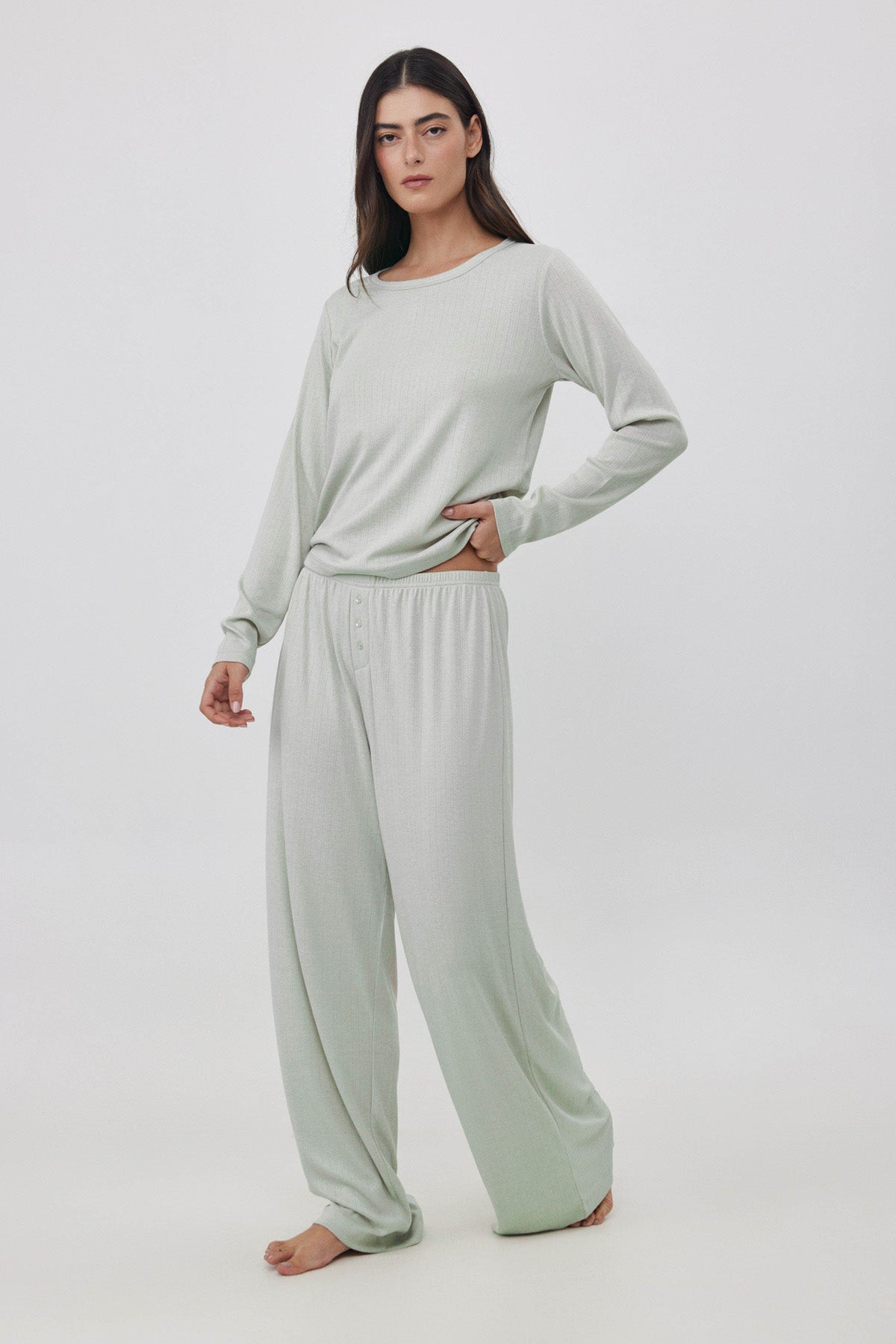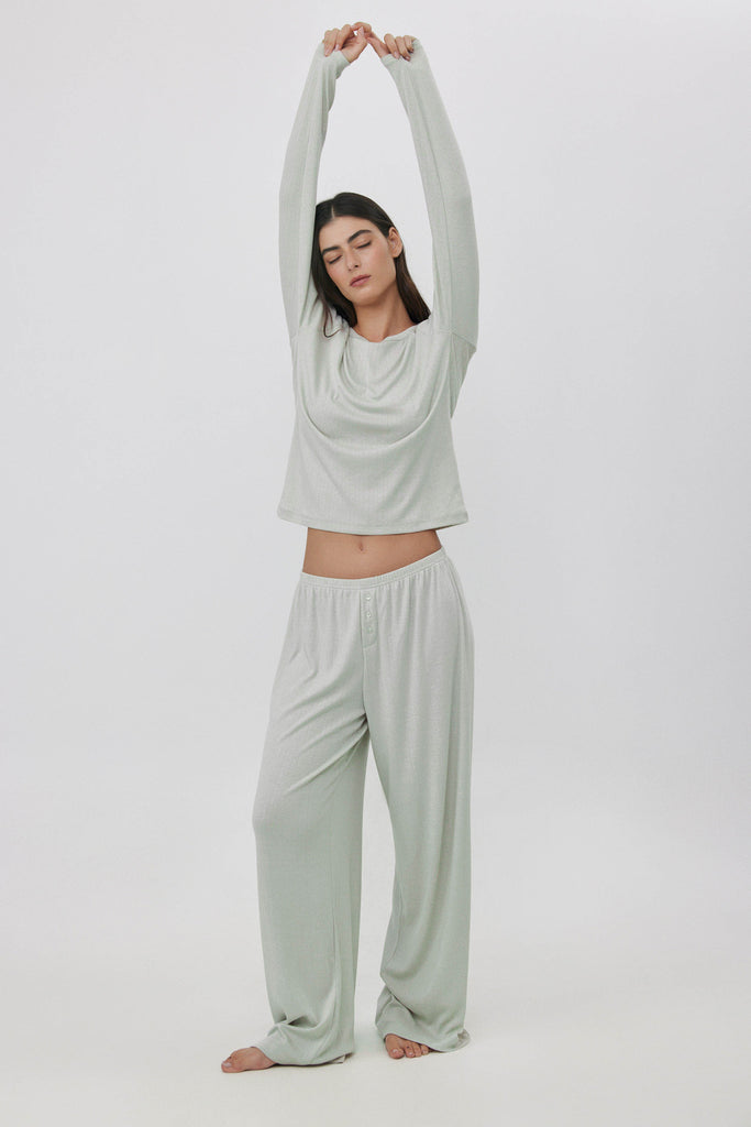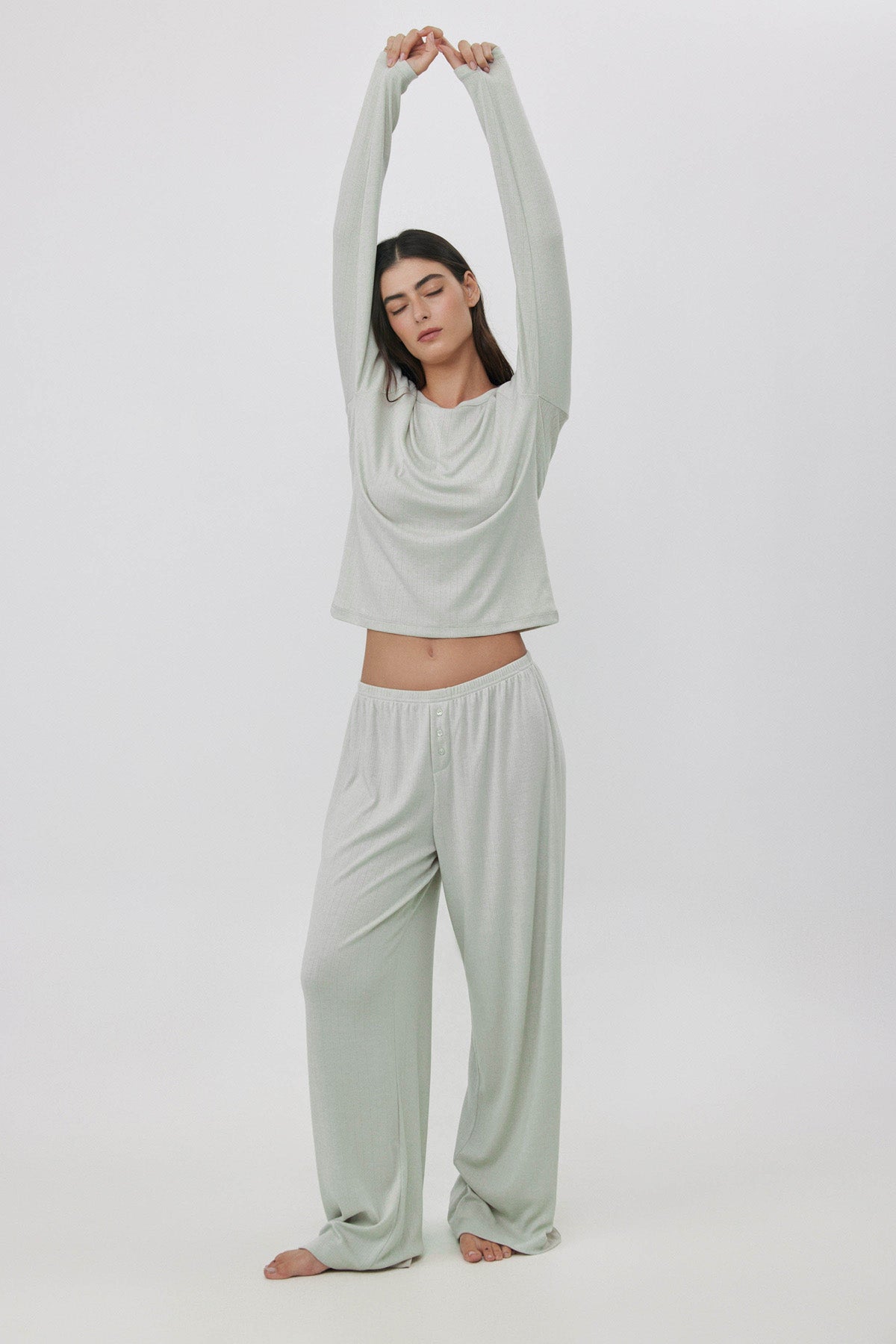 חולצת בייסיק עם שרוולים ארוכים מבד רך בסריגת פויינטל