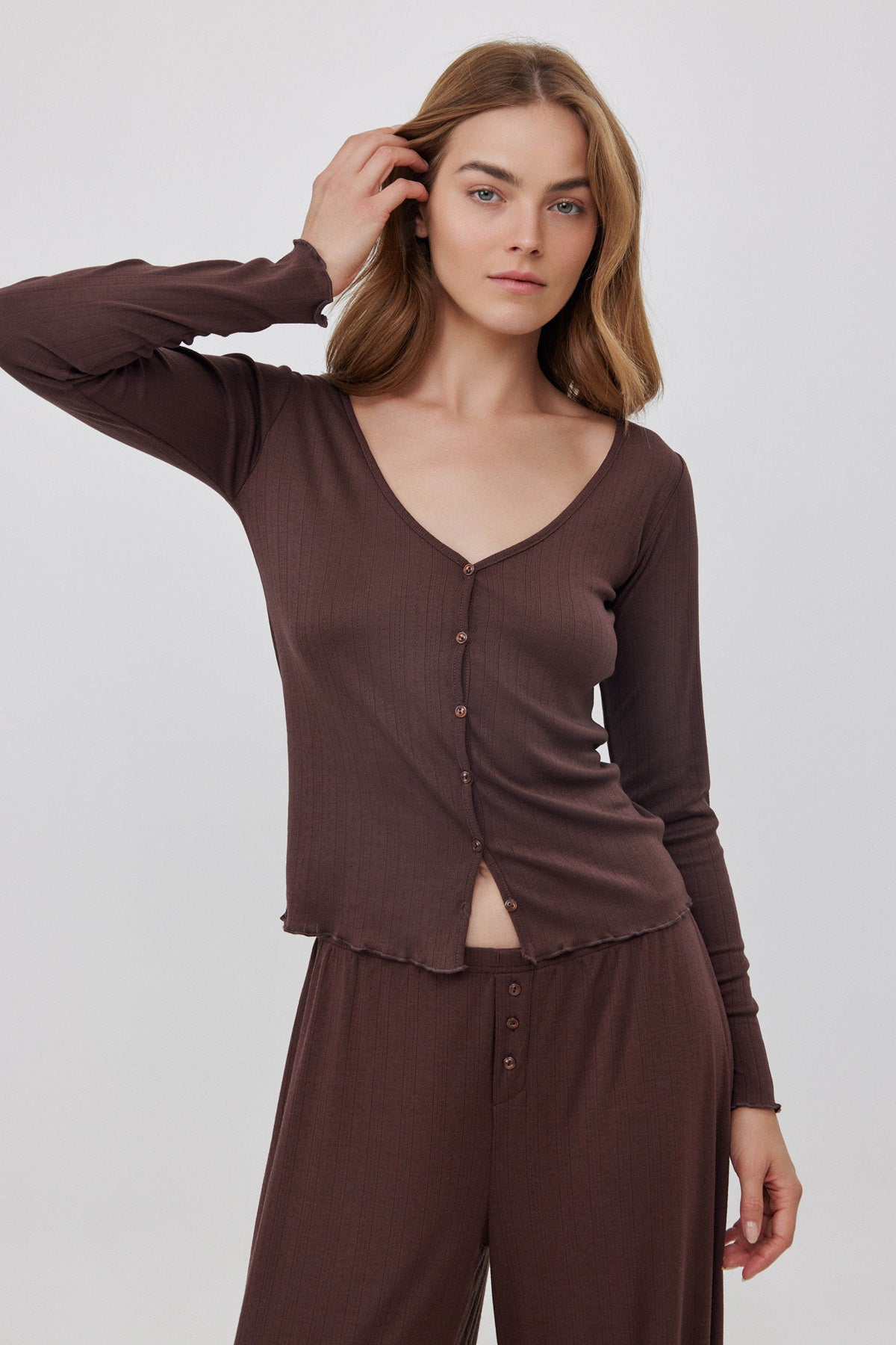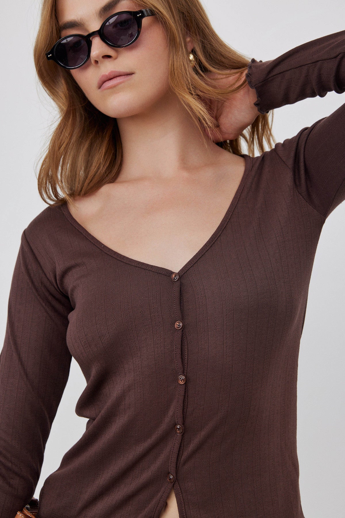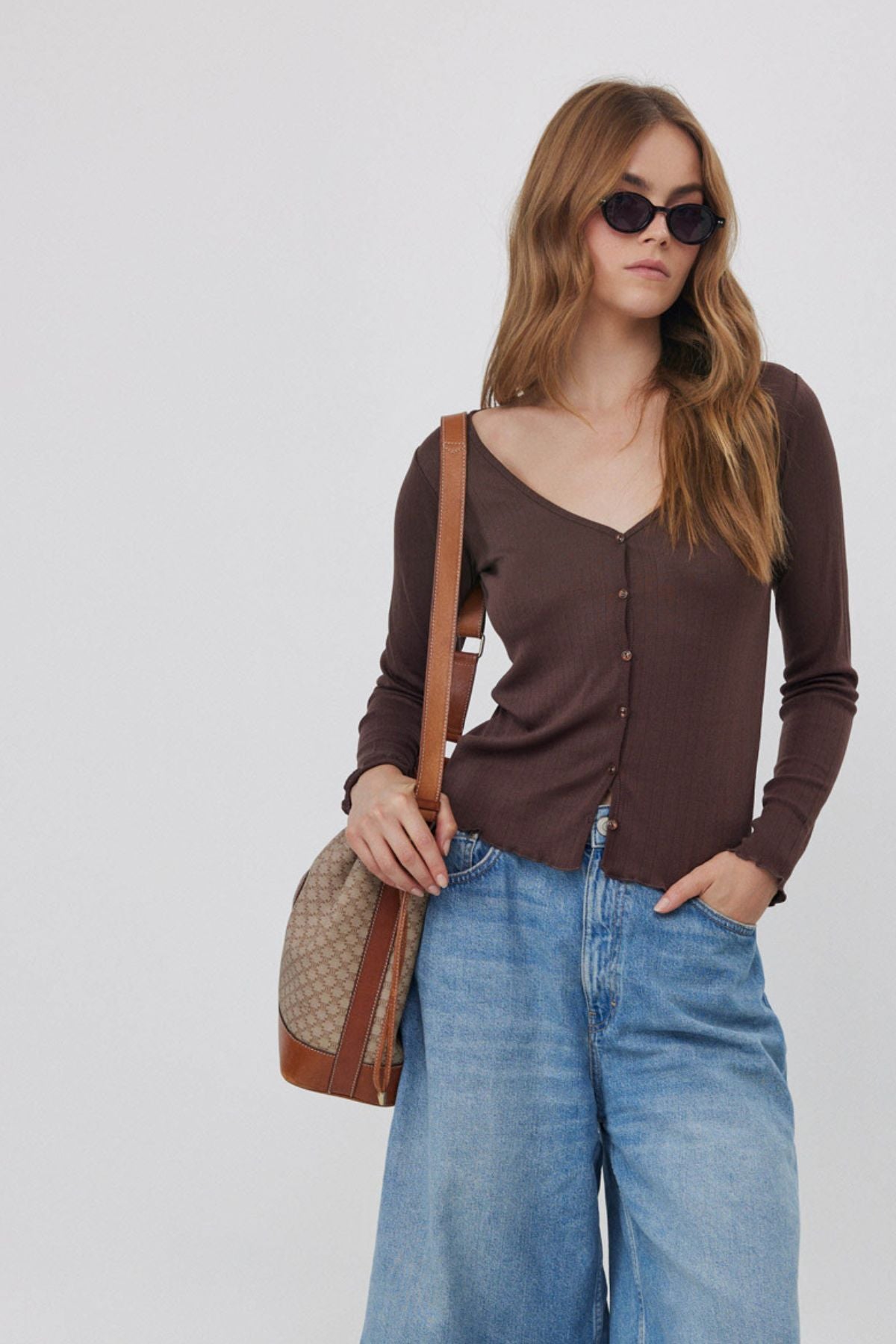 קרדיגן מבד רך בסריגת פויינטל עם שרוולים ארוכים