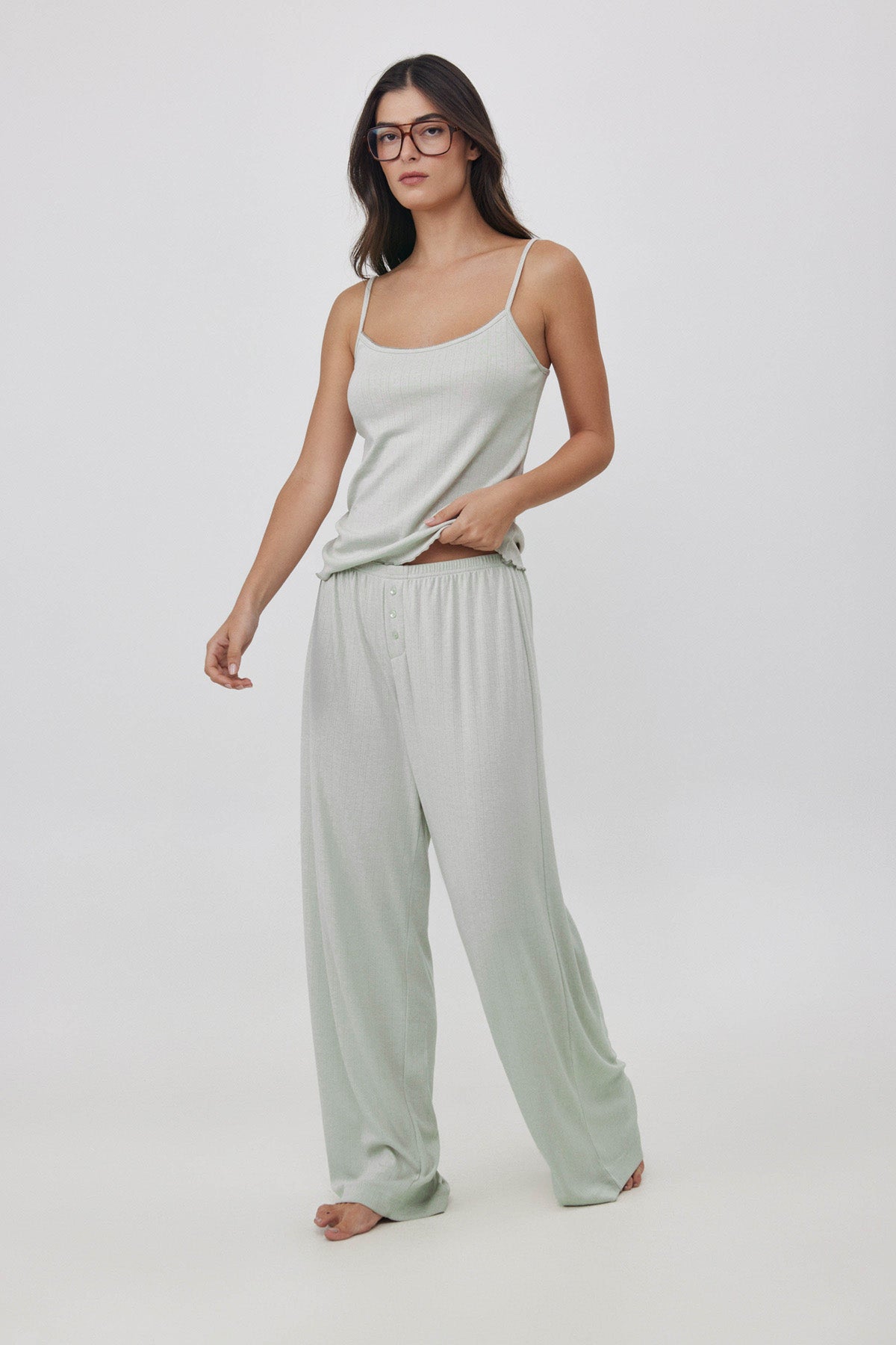 מכנסיים רחבים פויינטל ירוק בהיר