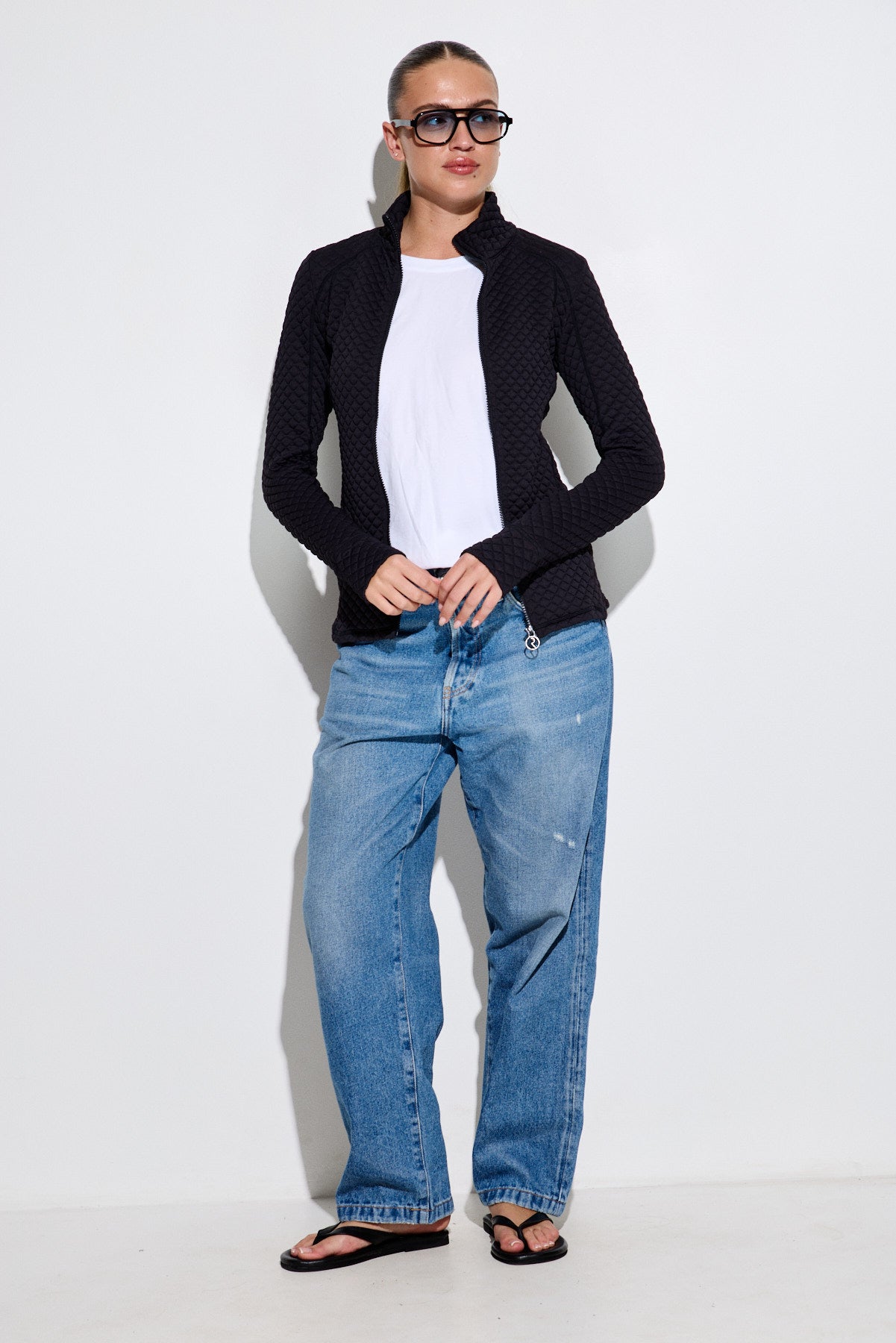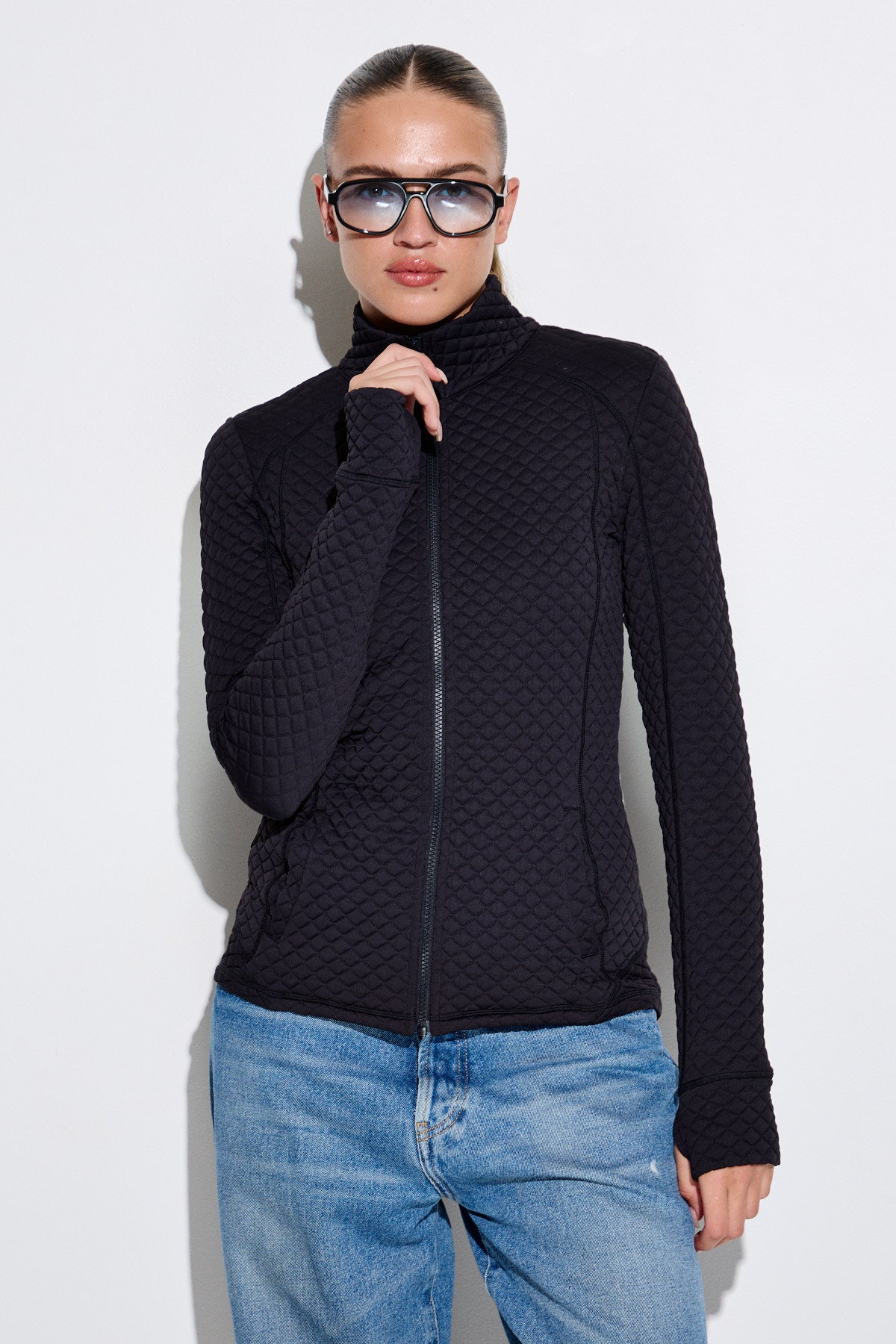 ג'קט ספורט טקסטורה קווילט עם רוכסן בגזרה צמודה לגוף