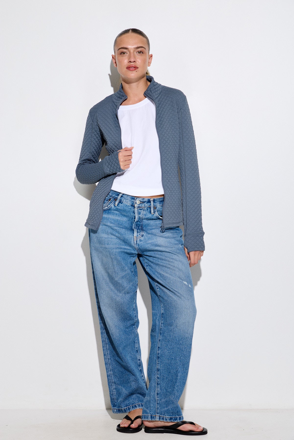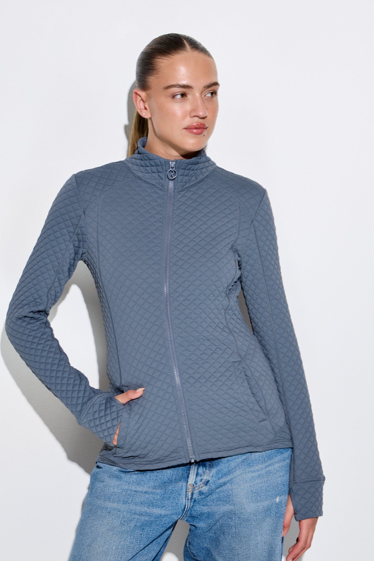ג'קט ספורט טקסטורה קווילט עם רוכסן בגזרה צמודה לגוף