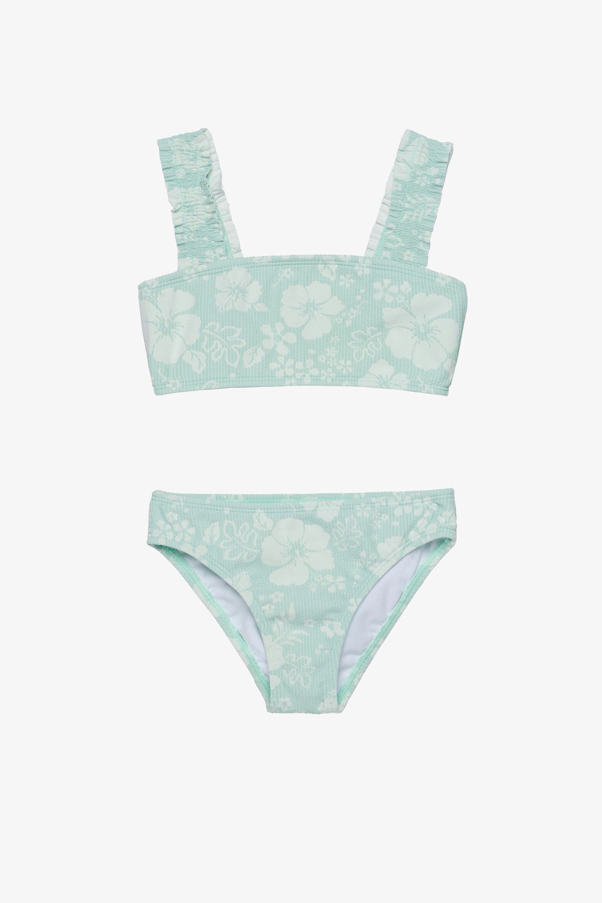 סט בגד ים שני חלקים לילדות בד טקסטורה הדפס פרחוני