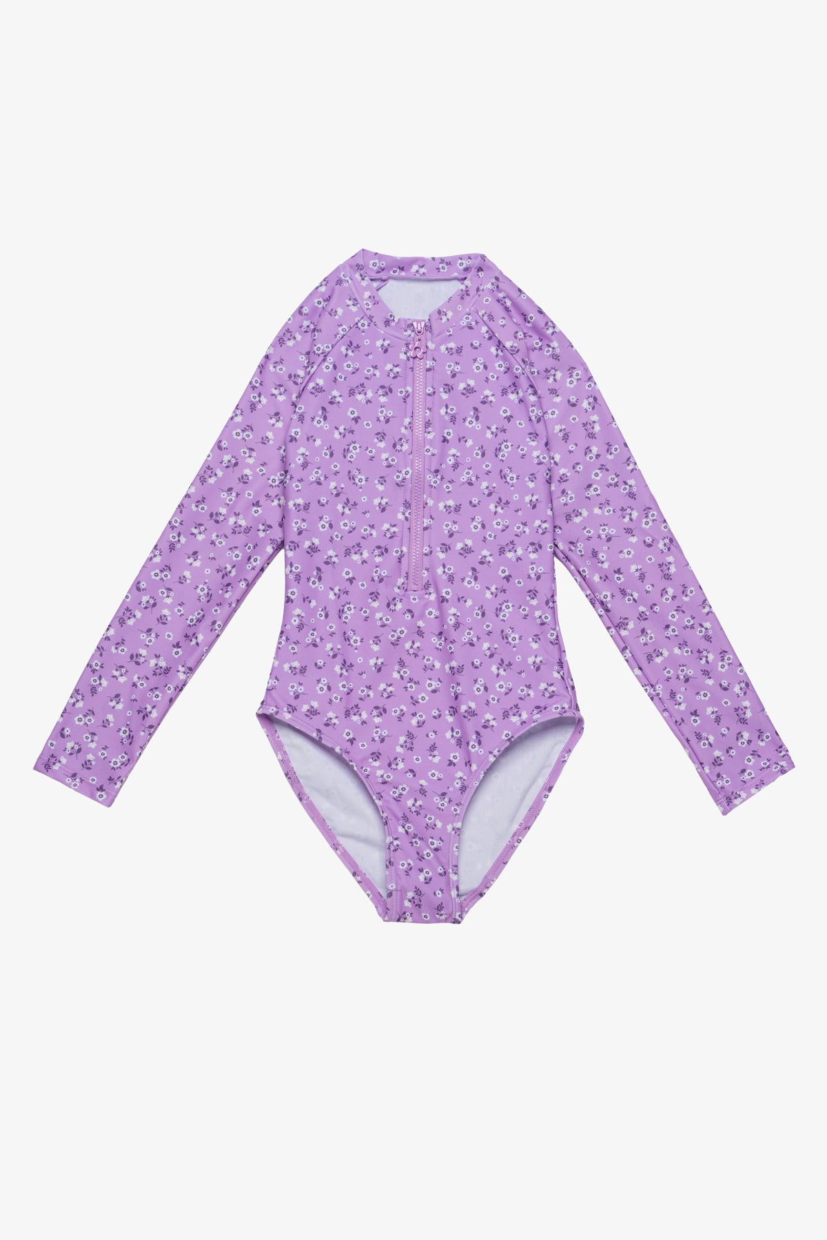 בגד ים לילדות שלם שרוול ארוך פרחוני סגול