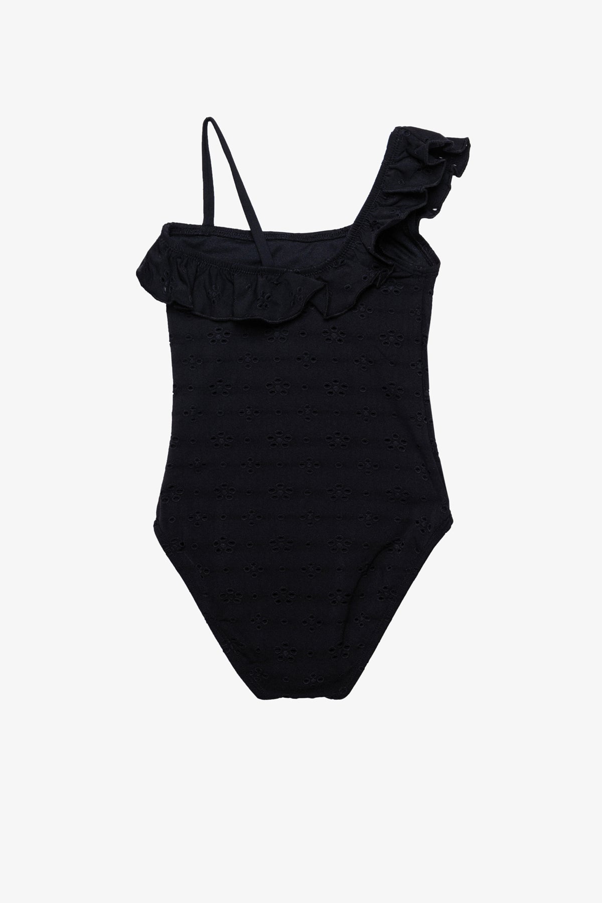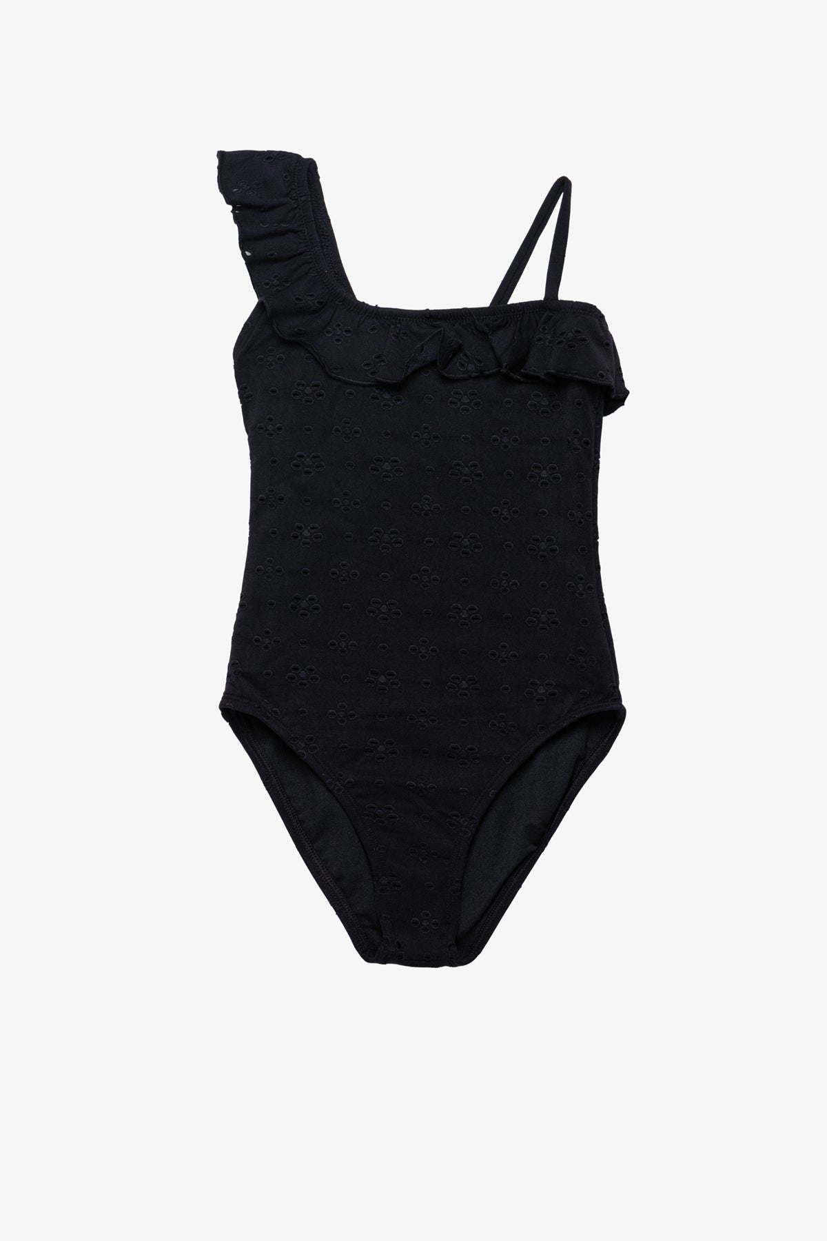 בגד ים לילדות שלם אסימטרי פרחוני שחור