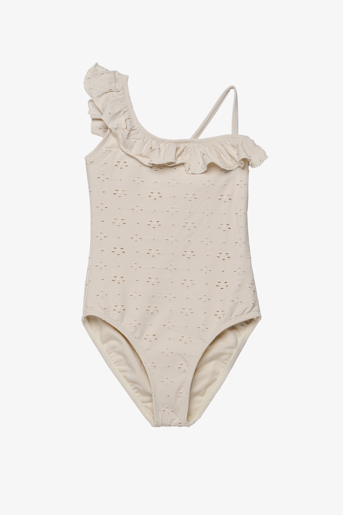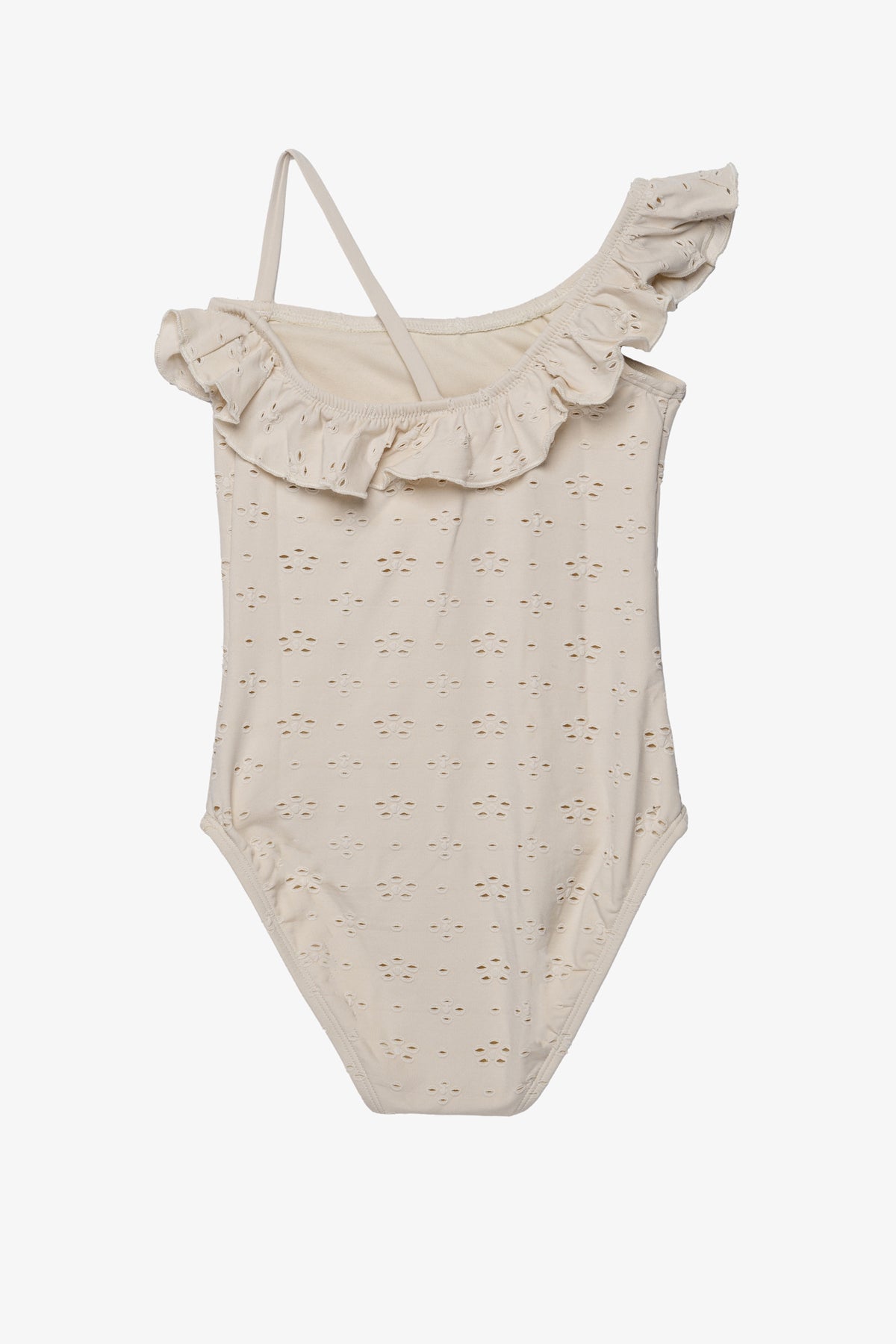 בגד ים לילדות שלם אסימטרי פרחוני בז'