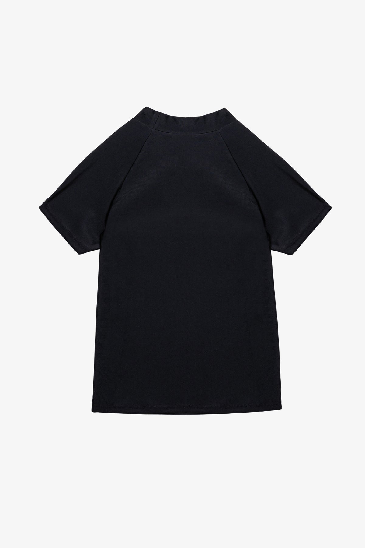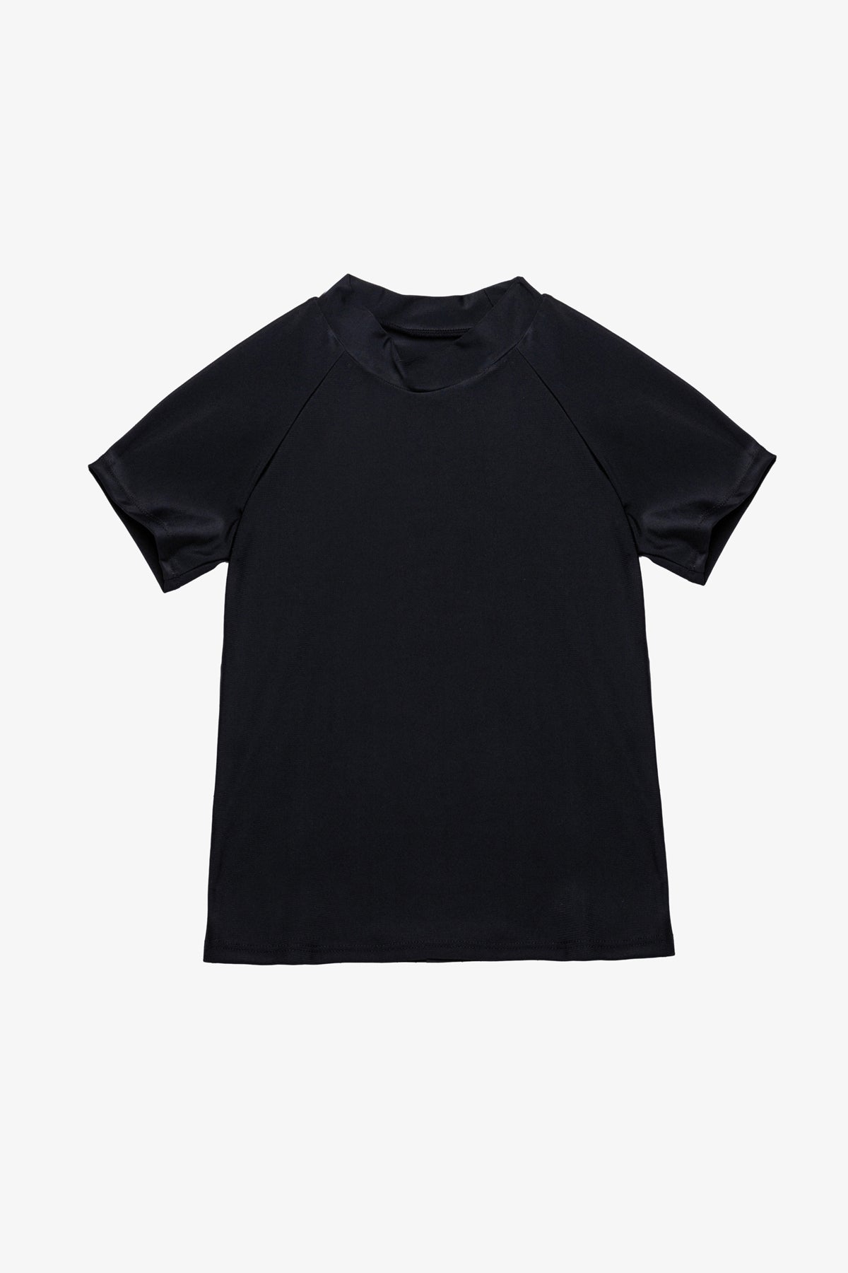 חולצת לייקרה בגד ים בצבע שחור עם שרוולים קצרים ומפתח צוואר עגול