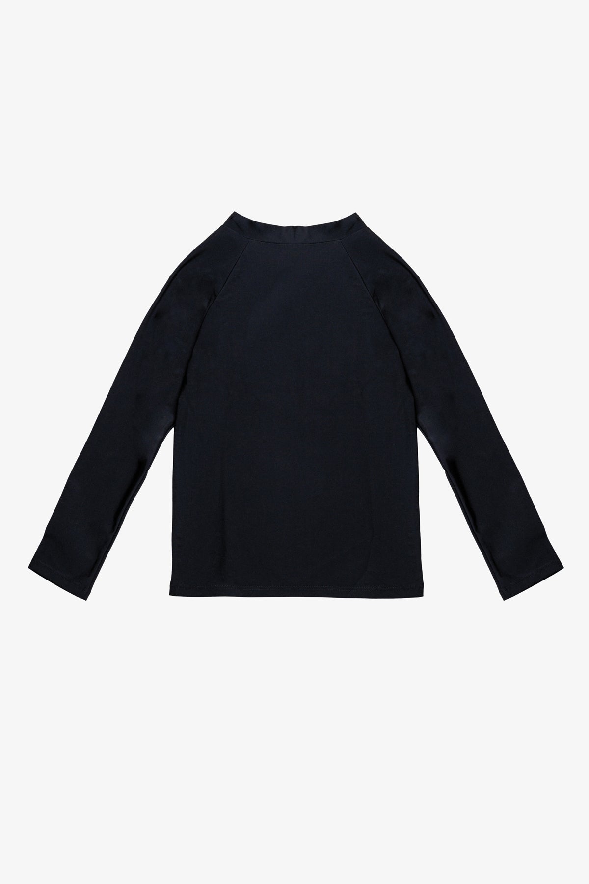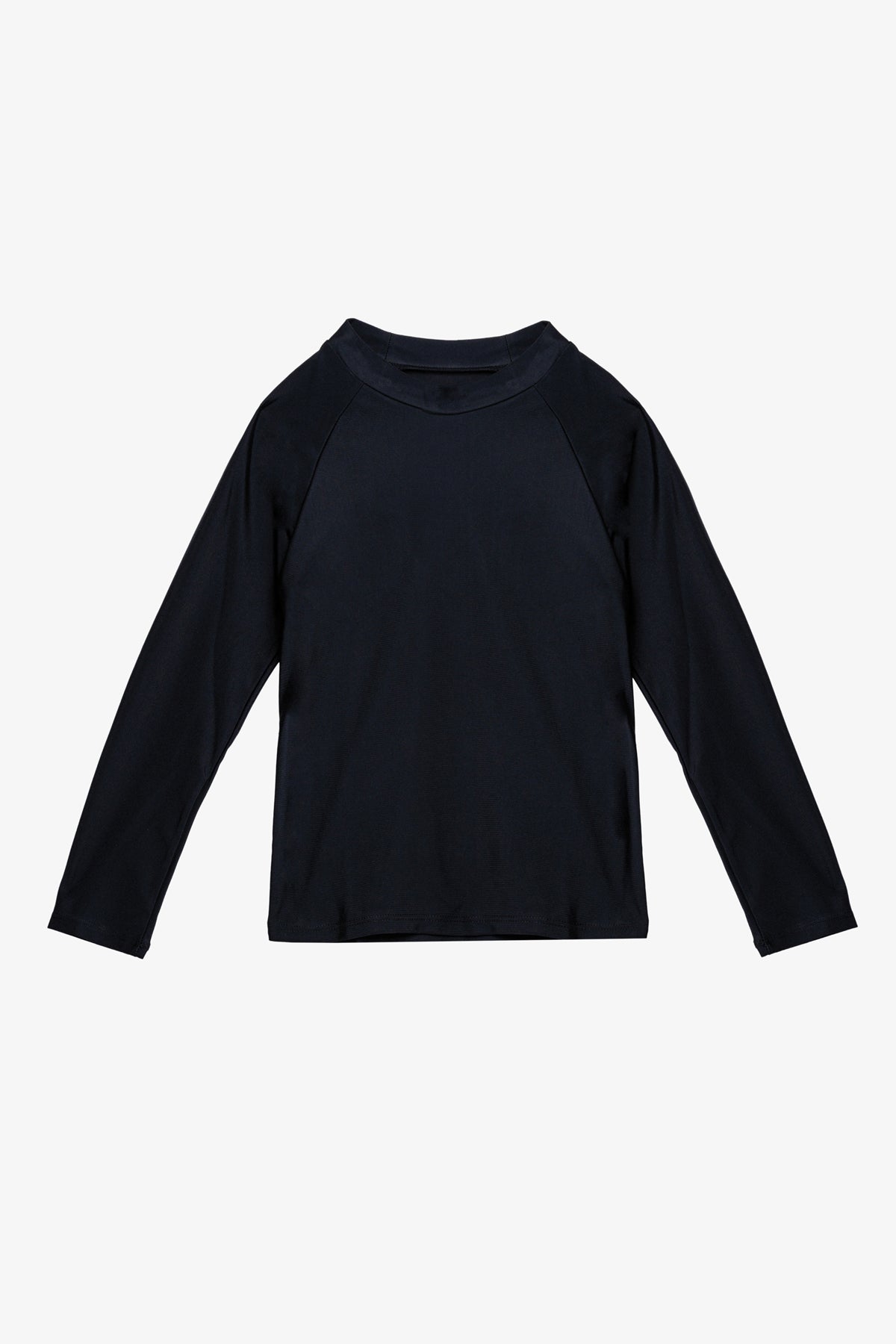 חולצת לייקרה בגד ים בצבע שחור עם שרוולים ארוכים ומפתח צוואר עגול
