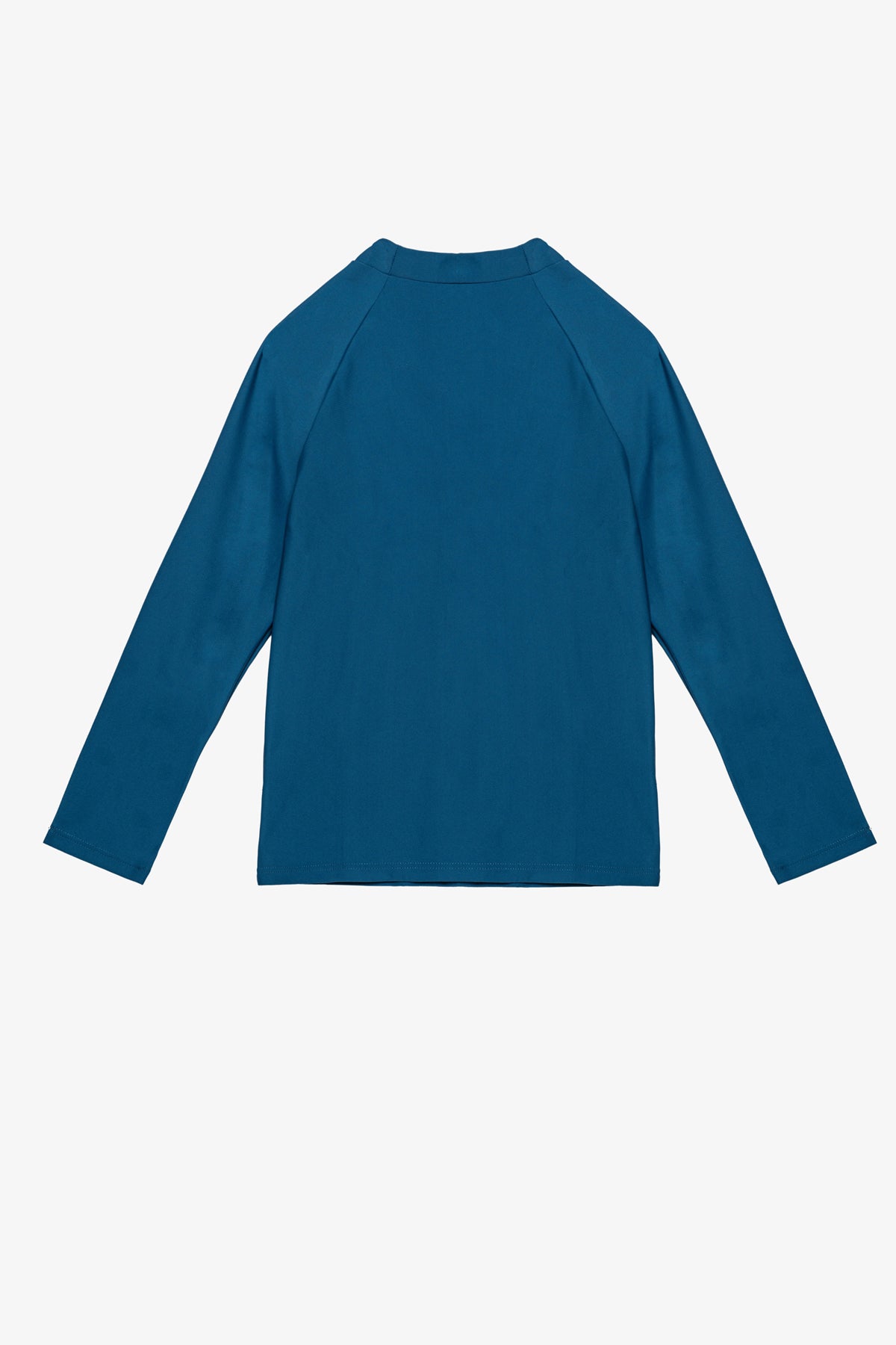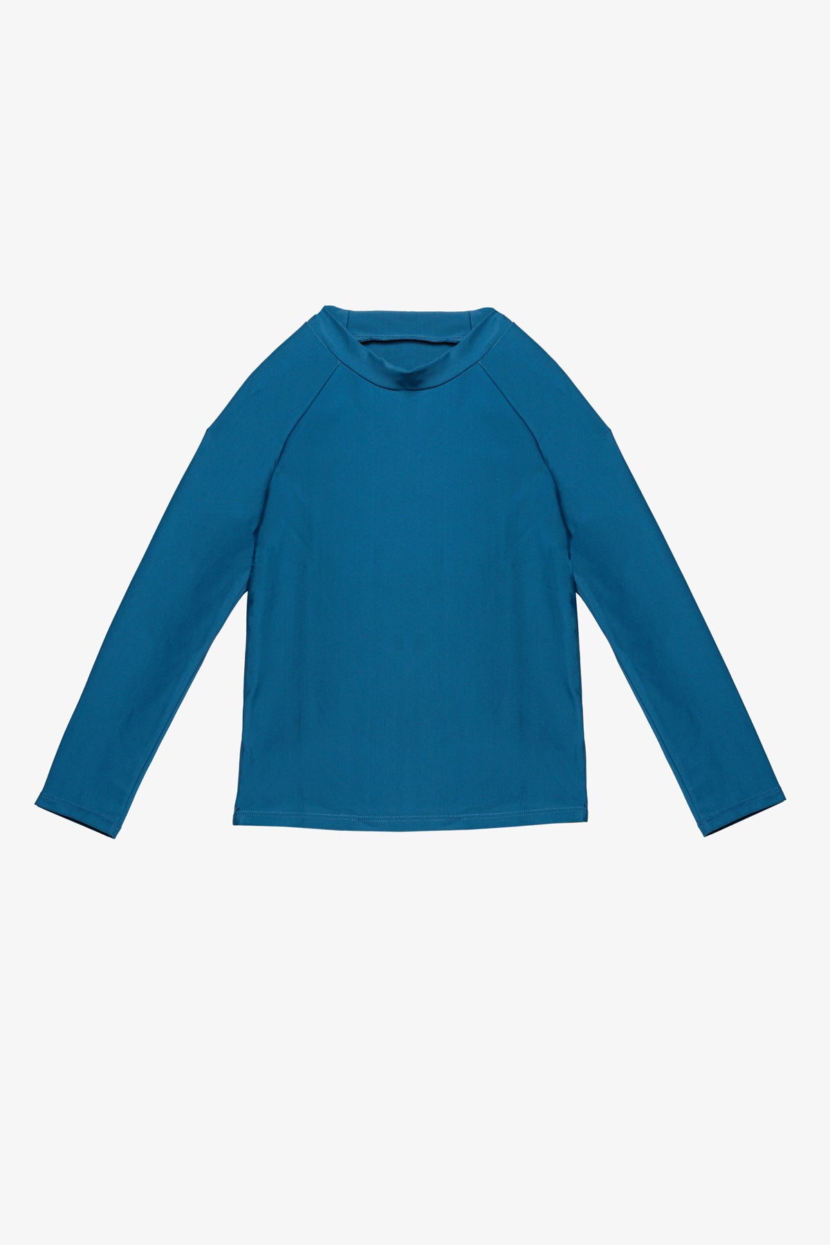 חולצת לייקרה בגד ים בצבע כחול גינס עם שרוולים ארוכים ומפתח צוואר עגול