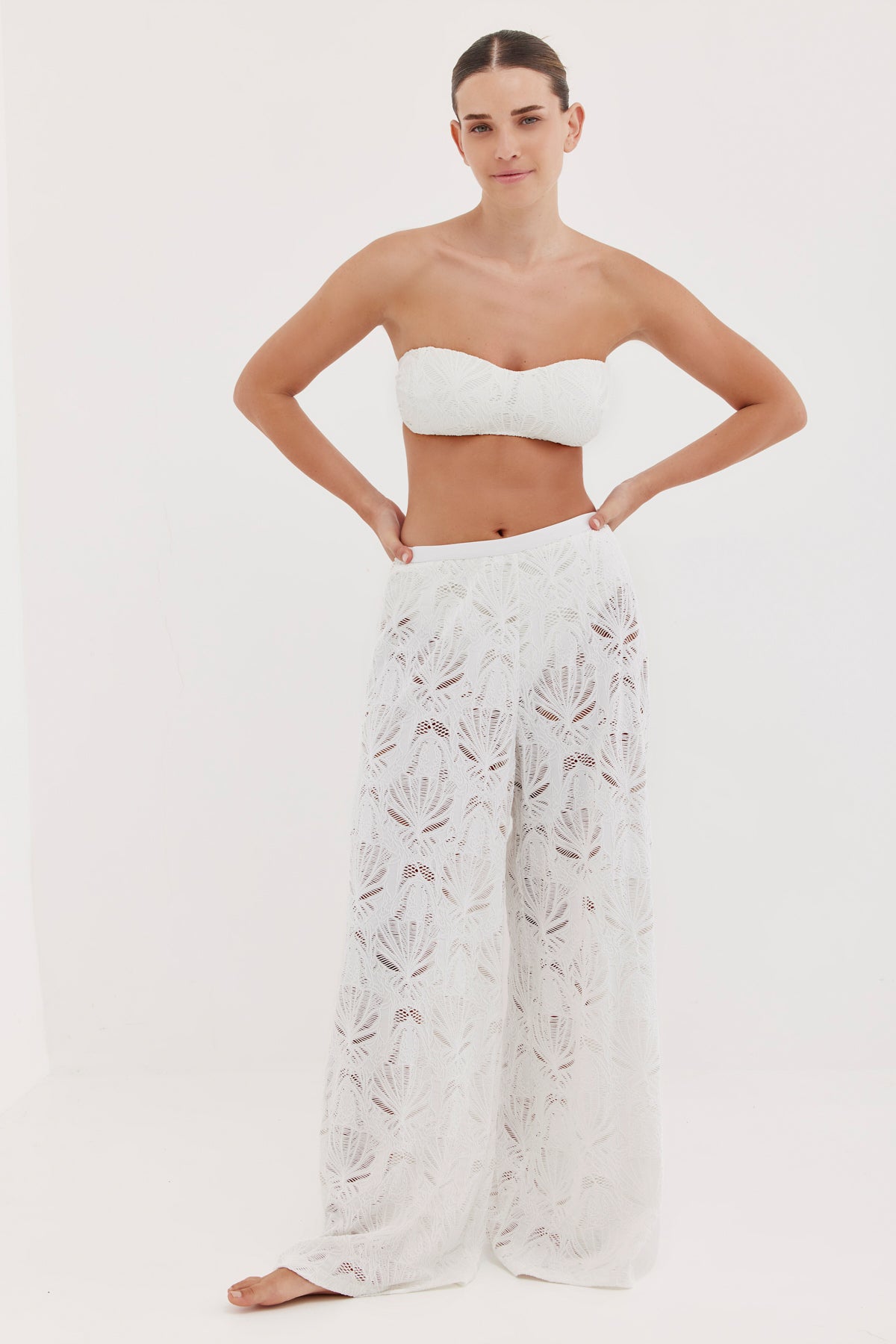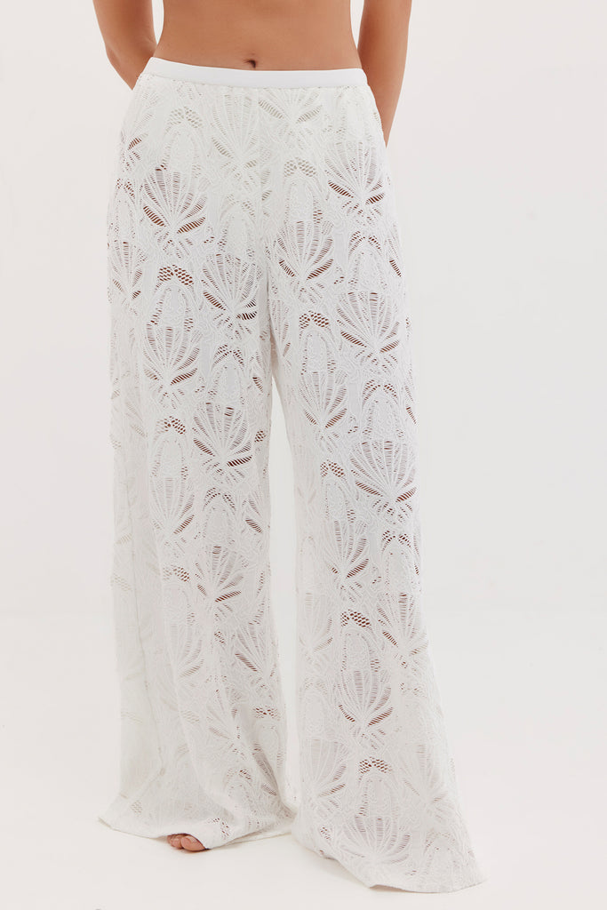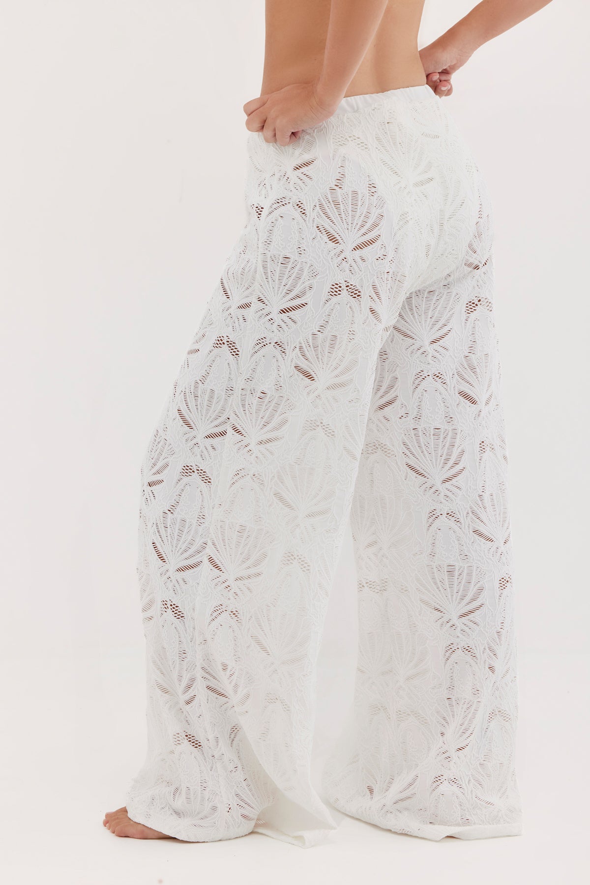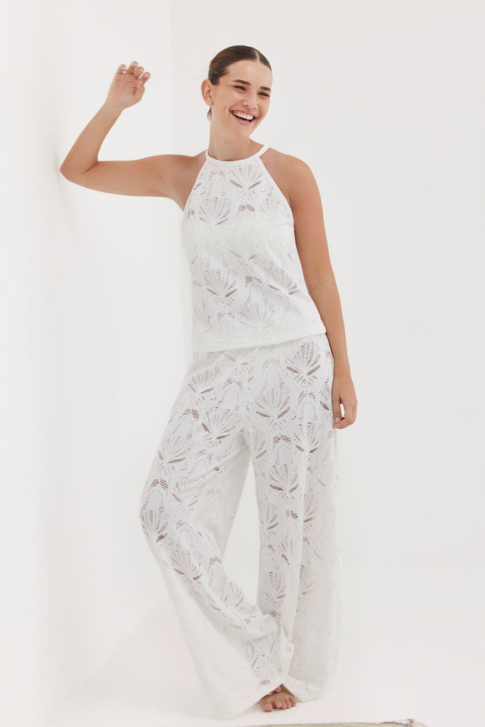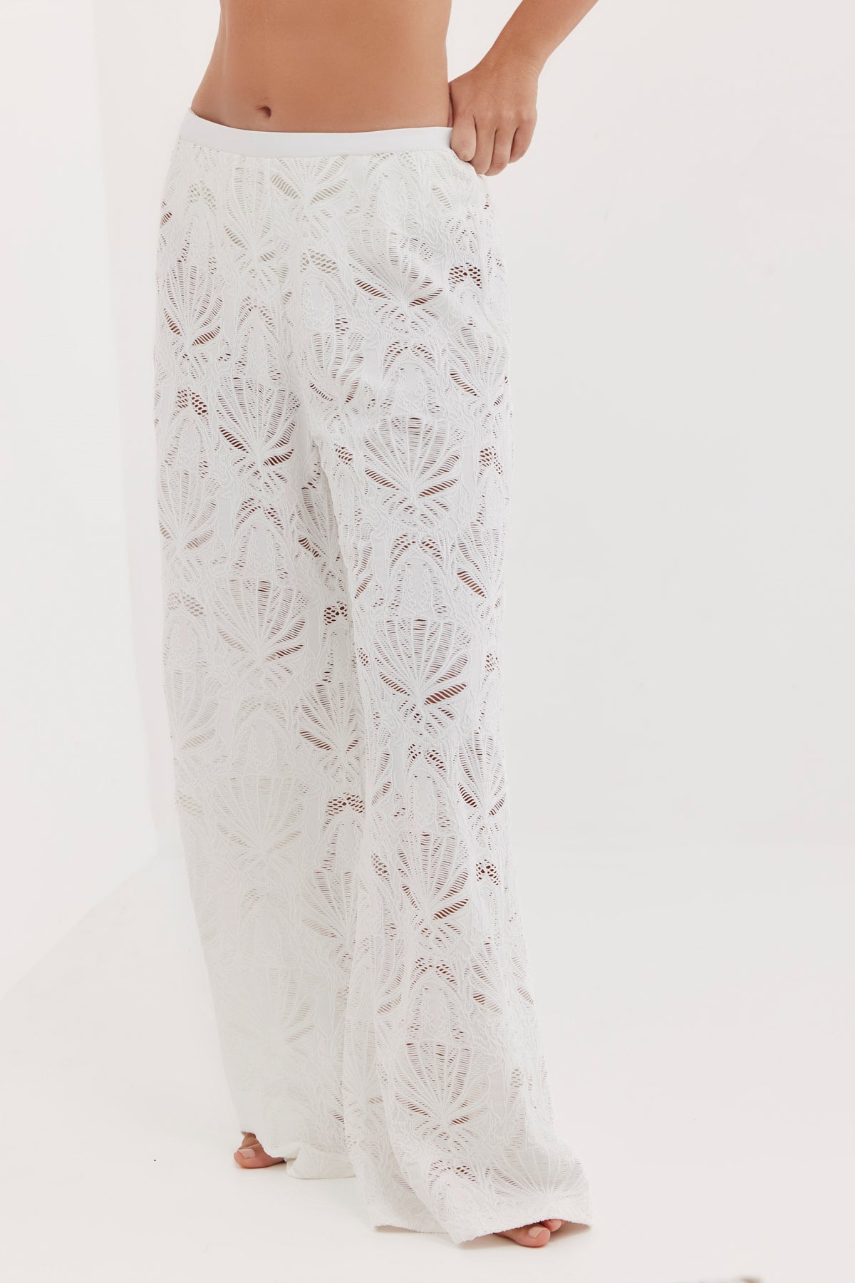 מכנסי תחרה בגזרה רחבה עם גומי במותן