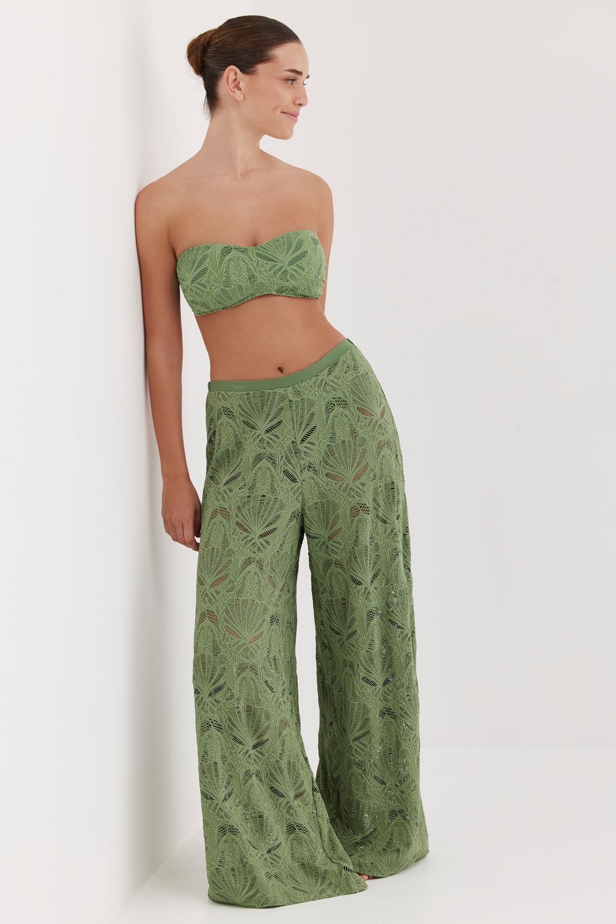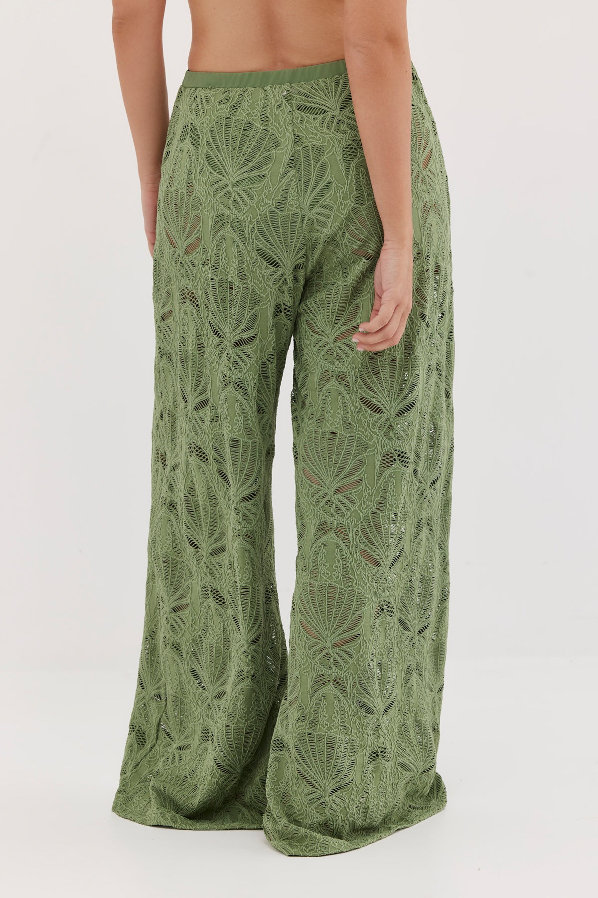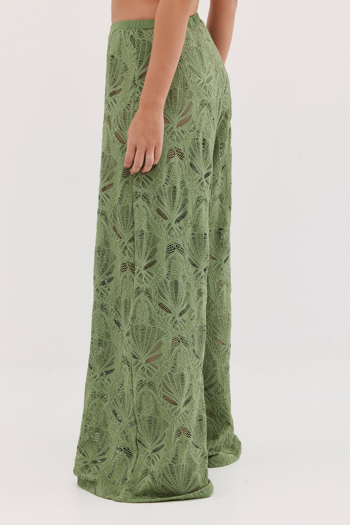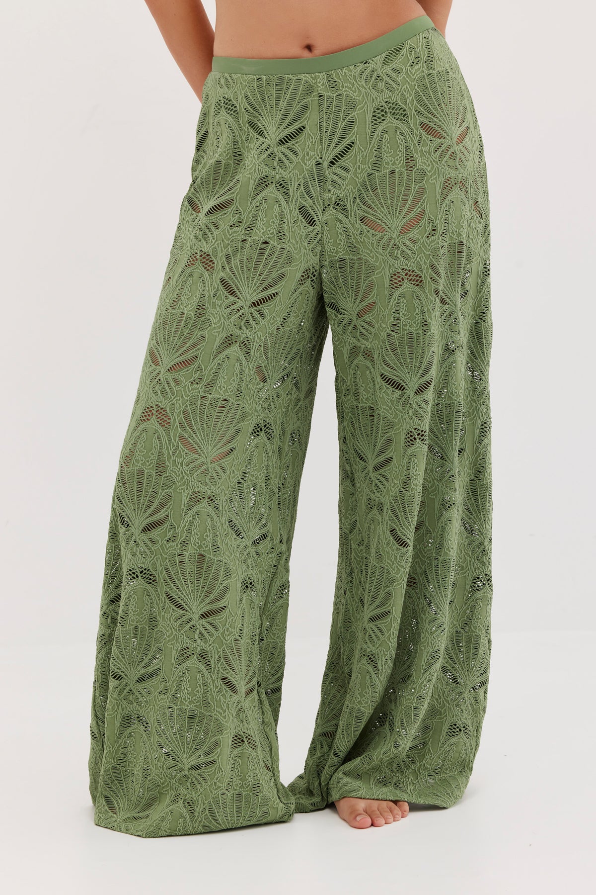 מכנסי תחרה בגזרה רחבה עם גומי במותן