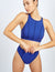 טופ ביקיני כחול בגזרת היי נק עם קאפים נשלפים וכתפיות מתכווננות להתאמה אישית